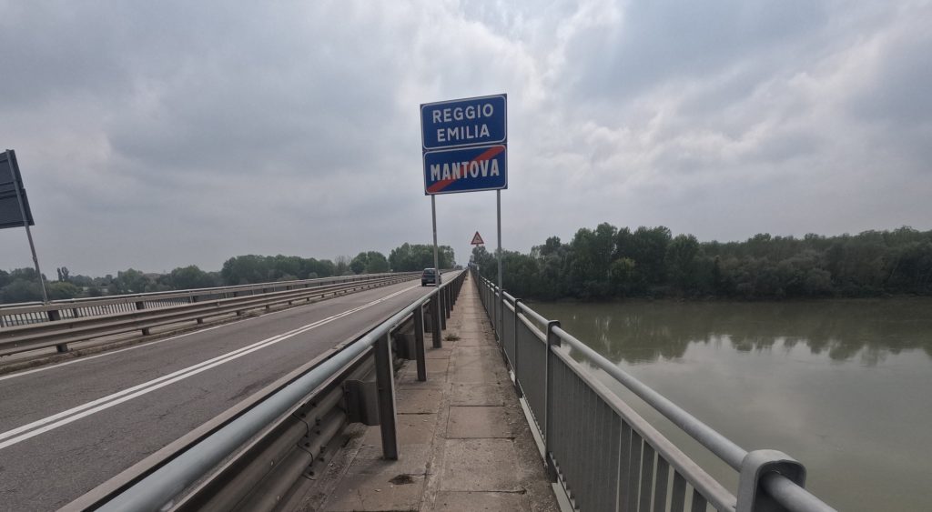 So perfekt der Dammweg auch ist, nach einer gewissen Zeit braucht man doch Abwechslung. Es reicht dann schon, einfach mal kurz die Uferseite zu wechseln und etwas Landstraße zu fahren. Da die Italiener ziemlich temperamentvoll Auto fahren, und das enge Überholen der Laster öfters mal adrenalingeladen ist, kehrt man dann gerne wieder freiwillig zurück auf die Dammwege.